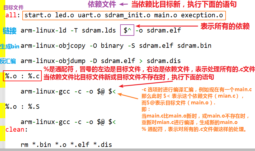 讯享网all: start.o led.o uart.o sdram_init.o main.o execption.o arm-linux-ld -T sdram.lds $^ -o sdram.elf arm-linux-objcopy -O binary -S sdram.elf sdram.bin arm-linux-objdump -D sdram.elf > sdram.dis %.o : %.c arm-linux-gcc -c -o $@ $< %.o : %.S arm-linux-gcc -c -o $@ $< clean: rm *.bin *.o *.elf *.dis