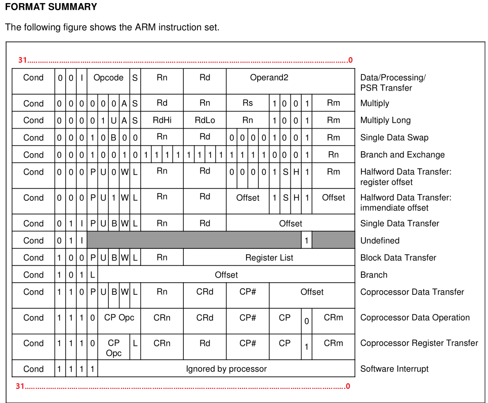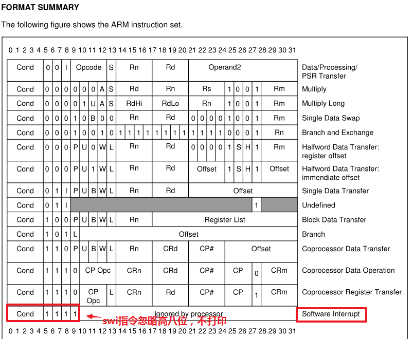 查看2440的ARM指令集的部分,里面有对指定的定义