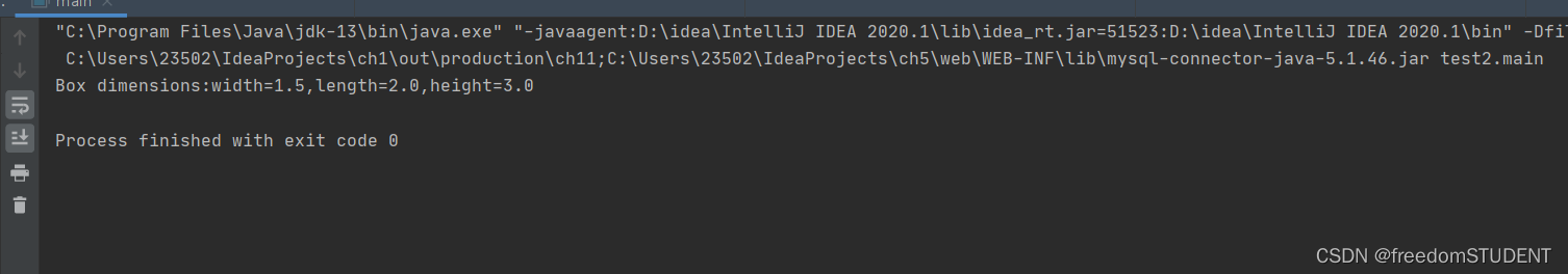 这段代码创建了一个 Box 对象b,调用了其中的showBox()方法,输出该对象的宽,长和高