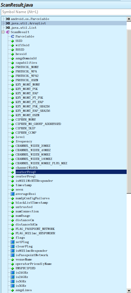 ScanResult是代表扫描结果的,当时其声明的成员变量并没有带有channel,那WiFi分析仪是如何获取信道的呢?