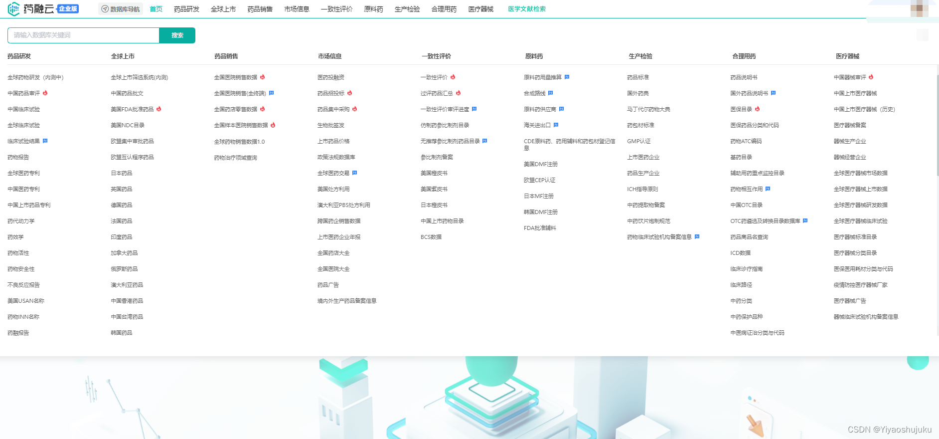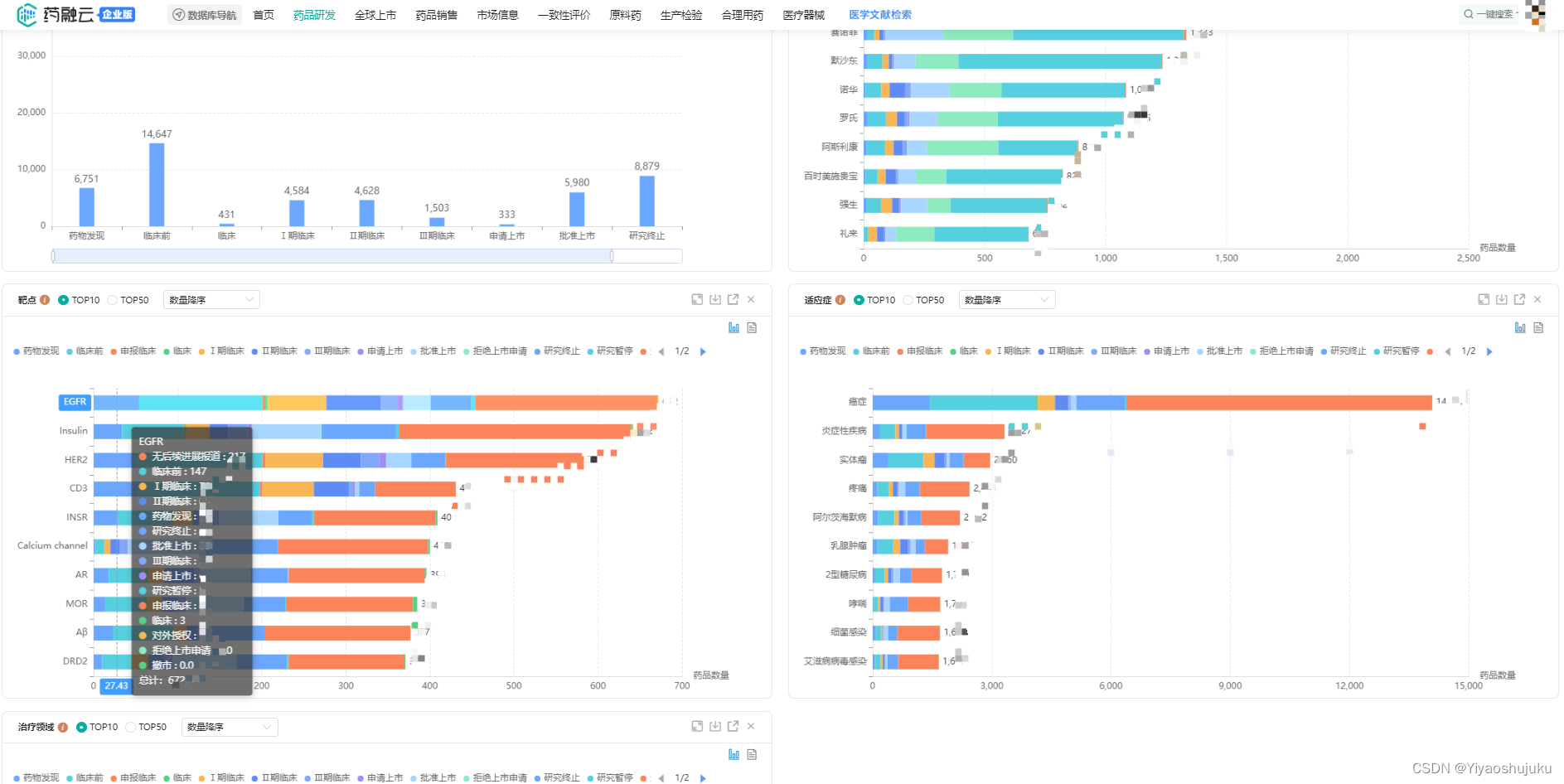 为了方便大家更直观的了解药渡数据库,笔者引入一个目前国内客户覆盖面最广的数据库(药融云医药数据库)作为对比。