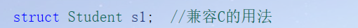 struct Student { char name[10]; int age; int id; }; int main() { struct Student s1; //兼容C的用法 Student s2; //升级到类,Student类名,也是类型 strcpy(s1.name, "张三"); s1.id = 1; s1.age = 10; strcpy(s2.name, "张三"); s2.id = 1; s2.age = 10; return 0; }
