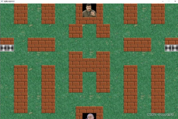 讯享网imgUnits[EMPTY] = NULL; loadimage(&imgUnits[TU_WALL], "res/wall1.png"); loadimage(&imgUnits[GANG_WALL], "res/wall2.png"); loadimage(&imgUnits[MY_HOME], "res/pj2.png"); loadimage(&imgUnits[ENEMY_HOME], "res/wukelan2.png");