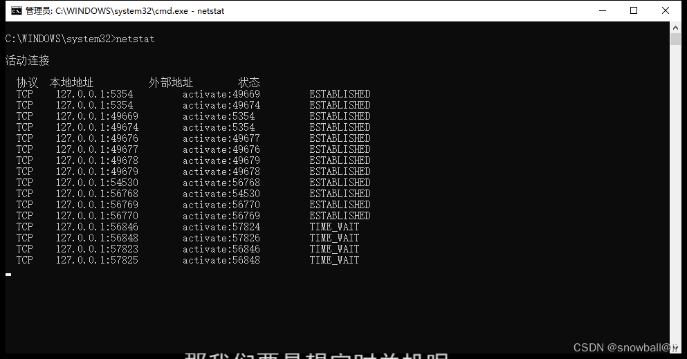 netstat -v :查看正在进行的工作