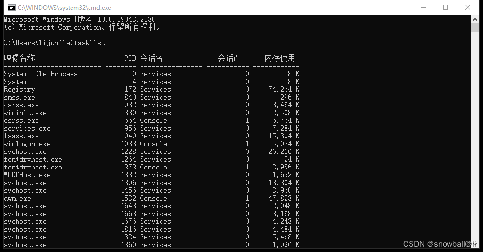 4、tasklist 列出正在运行的进程