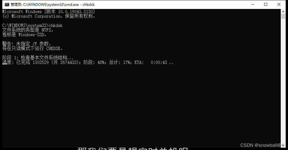 6、chkdsk(检查磁盘,默认为C盘)