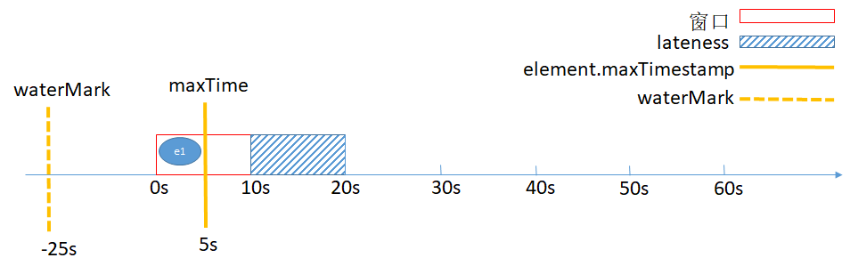 a、element.MaxTimestamp = 5s ; waterMark = -25s: