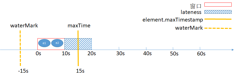 b、element.MaxTimestamp = 15s ; waterMark = -15s :