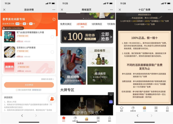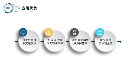 结合了当下流行“社交电商”与“拼团玩法”,通过更人性化的奖励机制,将产 品销售中的利润最大化让利于参与拼团的用户。