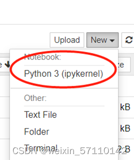 再点击右上角的New,选择Python3 (ipykernel)
