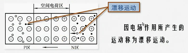 内电场使空穴从N区向P区、自由电子从P区向N区运动。