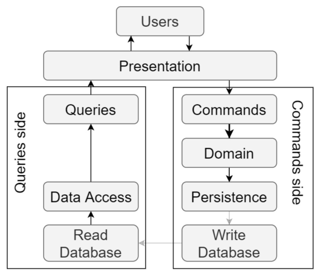 CQRS 建议将应用程序层分为两个方面,即命令端(Command)和查询端(Query)。