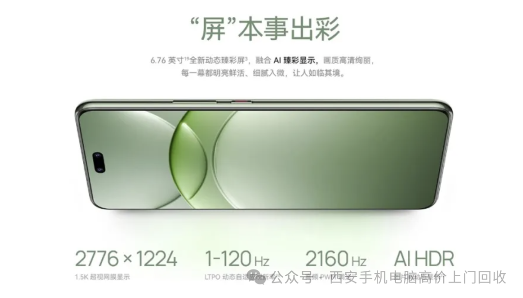 华为 nova 13 Pro 配备一块 6.76 英寸 OLED 四曲面微曲屏,2776*1224 分辨率,2160Hz 高频 PWM 调光,其他参数与标准版一致。