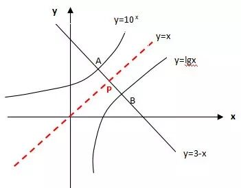 例:方程10x+x=3,lgx=3-x的根分别为x1、x2,则x1+x2=?