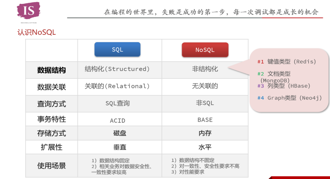 易子涵同学从关系型数据库与非关系型数据库的对比出发,巧妙地引出了NoSQL的概念。他解释说,NoSQL代表了一种灵活且高效的数据存储方式,特别擅长处理大规模的数据集和高性能的请求需求。