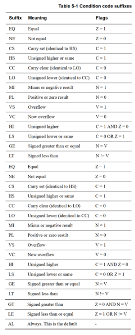 - S表示该指令执行后,会去修改程序状态寄存器;