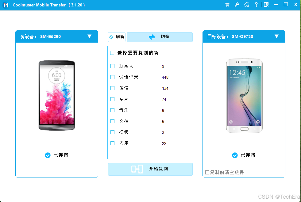 如何使用Coolmuster Mobile Transfer将通话记录从Android传输到Android: