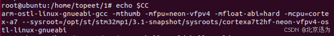 然后我们使用以下命令设置对应的交叉编译环境,如下图所示: