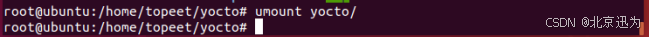 拷贝完成后,使用命令“umount yocto/”,进行解除挂载,如下图所示: