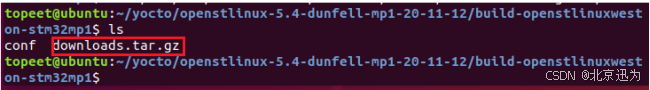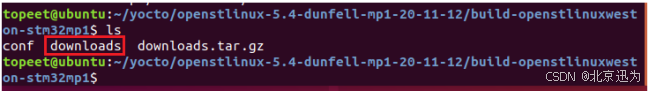 首先将downloads.tar.gz拷贝到build-openstlinuxweston-stm32mp1目录下,拷贝完成如下图所示: