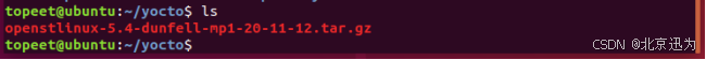 拷贝“iTOP-STM32MP157开发板iTOP-STM32MP157开发板网盘资料汇总03_文件系统源码和镜像06_yocto文件系统01_拉取好的layers源码”目录下的openstlinux-5.4-dunfell-mp1-20-11-12.tar.gz到虚拟机ubuntu目录下,如下图所示: