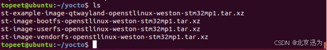 至此我们的yocto文件系统就编译完成了。编译完成后所生成的镜像文件保存在tmp-glibc/deploy/images/stm32mp1目录下,如下图所示: