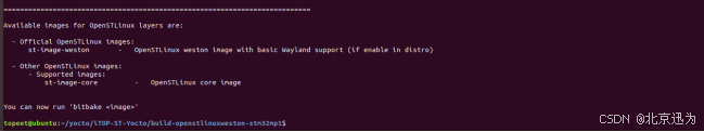 如下图完成会自动进入build-openstlinuxweston-stm32mp1目录如下如图所示: