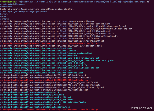 至此我们的文件系统镜像就制作完成了,然后覆盖掉我们“iTOP-STM32MP157开发板网盘资料汇总03_文件系统源码和镜像06_yocto文件系统04_烧写镜像文件image”路径下的st-example-image-qtwayland-openstlinux-weston-stm32mp1.ext4即可。