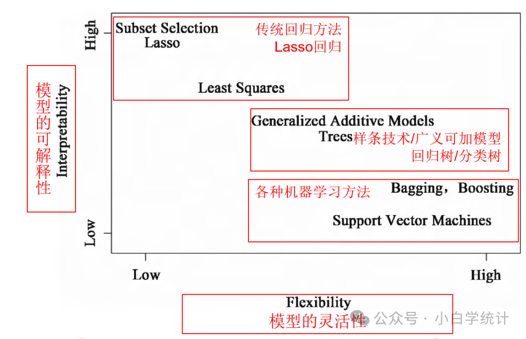讯享网 没有任何一种方法是完美的。 回归方法解释度很好,但灵活度不足;机器学习方法很灵活,但解释能力有限 。