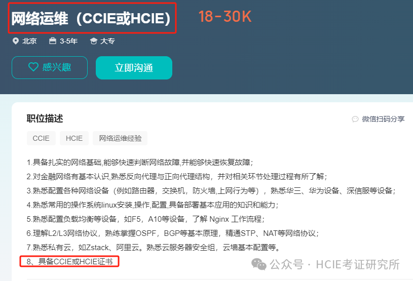 比如,思科的CCIE,几乎是所有搞网络的都认可的;而在华为体系内,HCIE是毋庸置疑的。