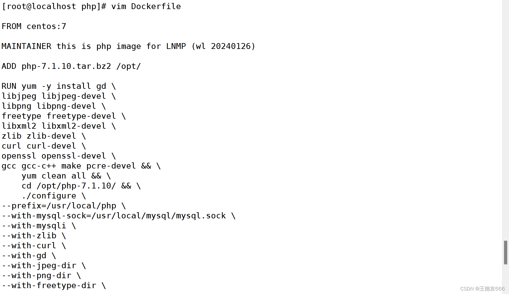 -DDEFAULT_COLLATION=utf8_general_ci -DWITH_EXTRA_CHARSETS=all -DWITH_INNOBASE_STORAGE_ENGINE=1 -DMYSQL_DATADIR=/usr/local/mysql/data -DWITH_BOOST=boost -DWITH_SYSTEMD=1 && make -j 2 && make install && useradd -M -s /sbin/nologin mysql && chown -R mysql:mysql /usr/local/mysql/ && chown mysql:mysql /etc/my.cnf && /usr/local/mysql/bin/mysqld –initialize-insecure –user=mysql –basedir=/usr/local/mysql –datadir=/usr/local/mysql/data ENV PATH \(PATH:/usr/local/mysql/bin:/usr/local/mysql/lib EXPOSE 3306 CMD ["/usr/local/mysql/bin/mysqld"]</pre> <p style="text-align:center;"><img alt="" src="https://i-blog.csdnimg.cn/blog_migrate/a6e96f7cbe07cbc009e0d.png" /></p> <p style="text-align:center;"><img alt="" src="https://i-blog.csdnimg.cn/blog_migrate/a3eb87e05fbd177b49d7e.png" /></p> <h6>生成镜像文件</h6> <pre>docker build -t lnmp:mysql . [+] Building 3.7s (9/9) FINISHED docker:default => [internal] load build definition from Dockerfile 0.0s => => transferring dockerfile: 1.13kB 0.0s => [internal] load metadata for docker.io/library/centos:7 3.4s => [internal] load .dockerignore 0.0s => => transferring context: 2B 0.0s => [1/4] FROM docker.io/library/centos:7@sha256:be65f488b7764ad3638f236b7b515ba5124c4 0.0s => [internal] load build context 0.0s => => transferring context: 742B 0.0s => CACHED [2/4] ADD mysql-boost-5.7.44.tar.gz /opt 0.0s => CACHED [3/4] COPY my.cnf /etc/my.cnf 0.0s => CACHED [4/4] RUN yum -y install ncurses ncurses-devel bison cmake openssl-devel gcc gcc-c 0.0s => exporting to image 0.0s => => exporting layers 0.0s => => writing image sha256:77caee91403ca8609ab4d6f26096f62e46b6e7e4f51d33bacd7f0f9f0 0.0s => => naming to docker.io/library/lnmp:mysql 0.0s docker images REPOSITORY TAG IMAGE ID CREATED SIZE php ky33 50a90ffed0ed 4 hours ago 965MB lnmp mysql 77caee91403c 5 hours ago 7.96GB docker-compose-nginx latest b1664f7fcaa8 5 hours ago 358MB lnmp nginx 03adabbbe917 5 hours ago 358MB</pre> <p style="text-align:center;"><img alt="" src="https://i-blog.csdnimg.cn/blog_migrate/0b639d6cf2043bac374cd819b5.png" /></p> <h6>配置mysql配置文件</h6> <pre>vim my.cnf [client] port = 3306 socket=/usr/local/mysql/mysql.sock [mysqld] user = mysql basedir=/usr/local/mysql datadir=/usr/local/mysql/data port = 3306 character-set-server=utf8 pid-file = /usr/local/mysql/mysqld.pid socket=/usr/local/mysql/mysql.sock bind-address = 0.0.0.0 skip-name-resolve max_connections=2048 default-storage-engine=INNODB max_allowed_packet=16M server-id = 1 sql_mode=NO_ENGINE_SUBSTITUTION,STRICT_TRANS_TABLES,NO_AUTO_CREATE_USER,NO_AUTO_VALUE_ON_ZERO,NO_ZERO_IN_DATE,NO_ZERO_DATE,ERROR_FOR_DIVISION_BY_ZERO,PIPES_AS_CONCAT,ANSI_QUOTES</pre> <p style="text-align:center;"><img alt="" src="https://i-blog.csdnimg.cn/blog_migrate/c6e2ad4d4116b0a95d9c48a7af18f583.png" /></p> <h4>3.3 准备php相关目录和文件</h4> <pre>mkdir -p /opt/docker-compose/php cd /opt/docker-compose/php</pre> <p style="text-align:center;"><img alt="" src="https://i-blog.csdnimg.cn/blog_migrate/26d217e0106ccd75ed88920e45c0dd29.png" /></p> <h6>配置Dockerfile镜像配置文件</h6> <pre>vim Dockerfile FROM centos:7 MAINTAINER this is php image for LNMP (wl ) ADD php-7.1.10.tar.bz2 /opt/ RUN yum -y install gd libjpeg libjpeg-devel libpng libpng-devel freetype freetype-devel libxml2 libxml2-devel zlib zlib-devel curl curl-devel openssl openssl-devel gcc gcc-c++ make pcre-devel && yum clean all && cd /opt/php-7.1.10/ && https://blog.csdn.net/2301_/article/details/configure --prefix=/usr/local/php --with-mysql-sock=/usr/local/mysql/mysql.sock --with-mysqli --with-zlib --with-curl --with-gd --with-jpeg-dir --with-png-dir --with-freetype-dir --with-openssl --enable-fpm --enable-mbstring --enable-xml --enable-session --enable-ftp --enable-pdo --enable-tokenizer --enable-zip && make -j 2 && make install && useradd -M -s /sbin/nologin nginx COPY php.ini /usr/local/php/lib/php.ini COPY php-fpm.conf /usr/local/php/etc/php-fpm.conf COPY www.conf /usr/local/php/etc/php-fpm.d/www.conf ENV PATH \)PATH:/usr/local/php/bin:/usr/local/php/sbin EXPOSE 9000 CMD [“/usr/local/php/sbin/php-fpm”, “-F”]