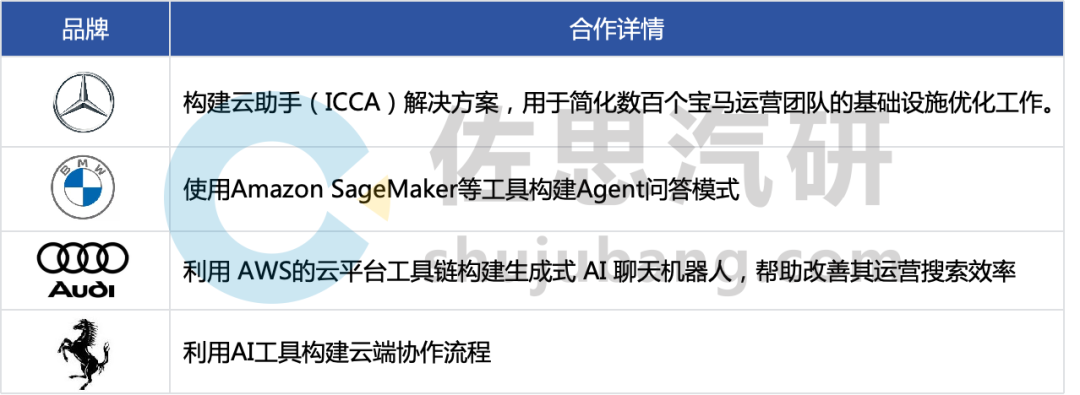 2024年,AWS汽车云与奔驰、宝马等国际品牌合作,通过云平台工具链构建AI助手,提高运营效率。