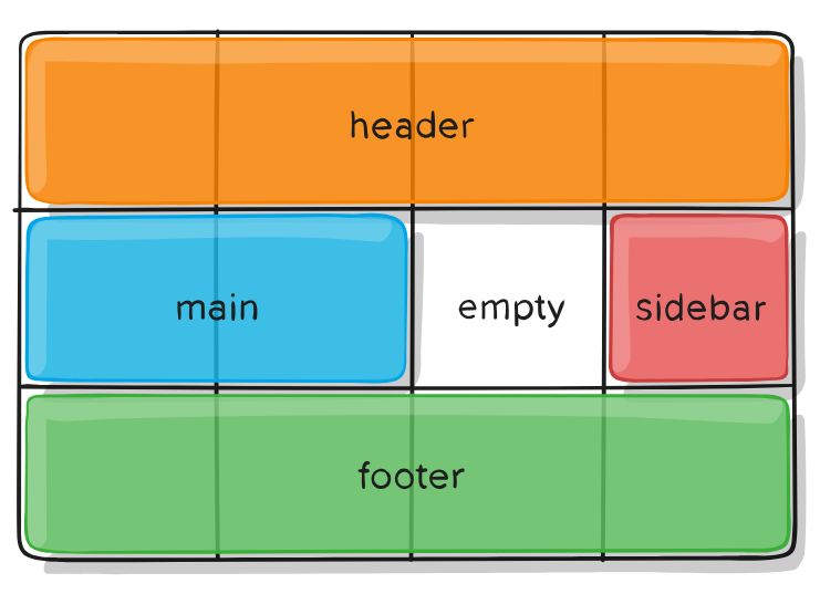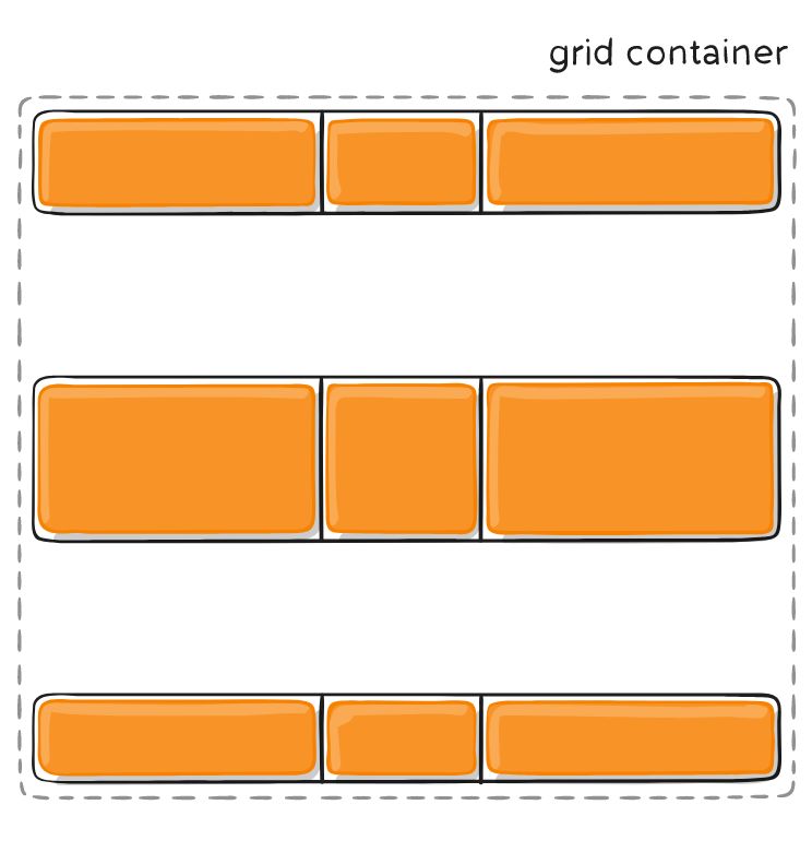- grid: [row1-start] “header header header” 1fr [row1-end]