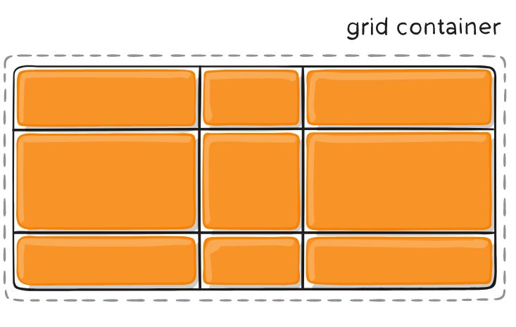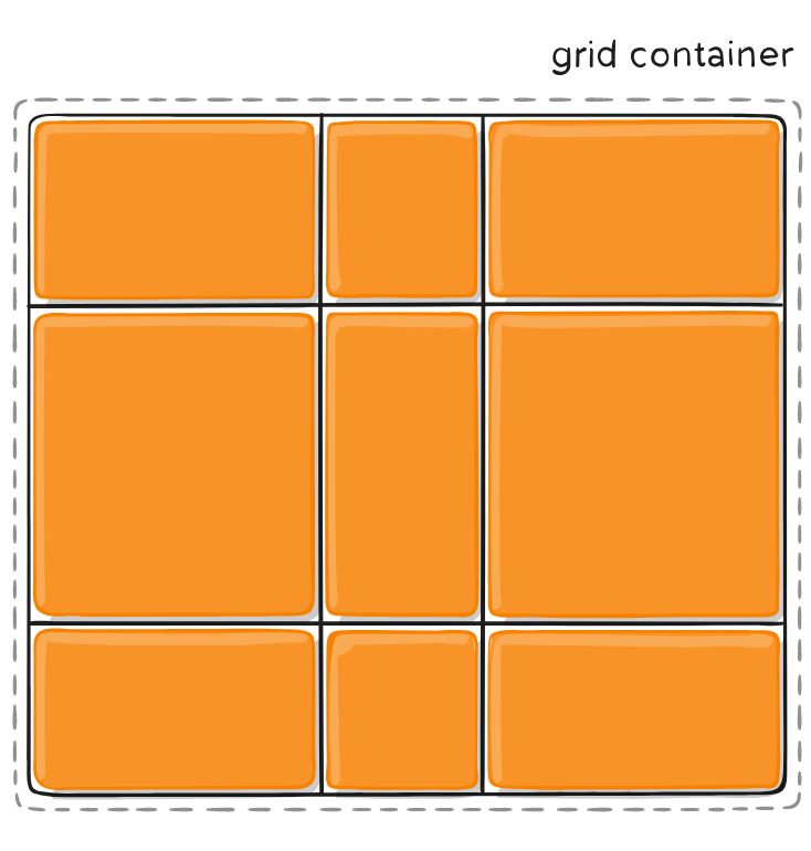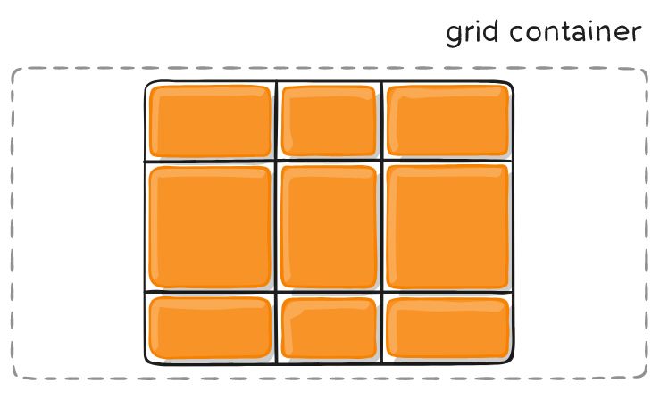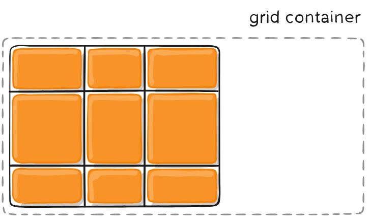 应用 display: grid 的元素。这是所有 网格项(grid item)的直接父级元素。在这个例子中,container就是 网格容器(Grid Container)。