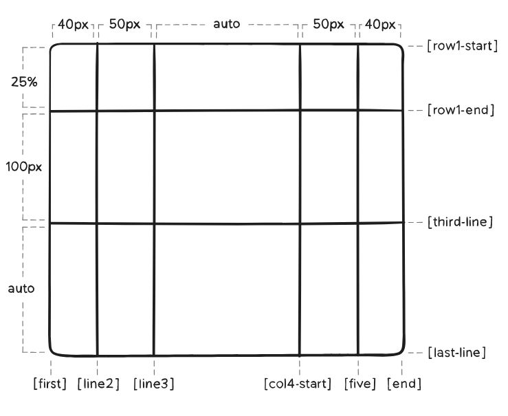 - grid-template-rows: [row1-start] 25% [row1-end] 100px