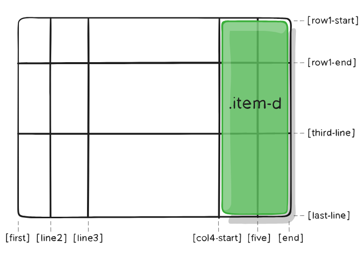 <start-line> / <end-line>:每个网格项都接受所有相同的值,作为普通书写的版本,包括跨度