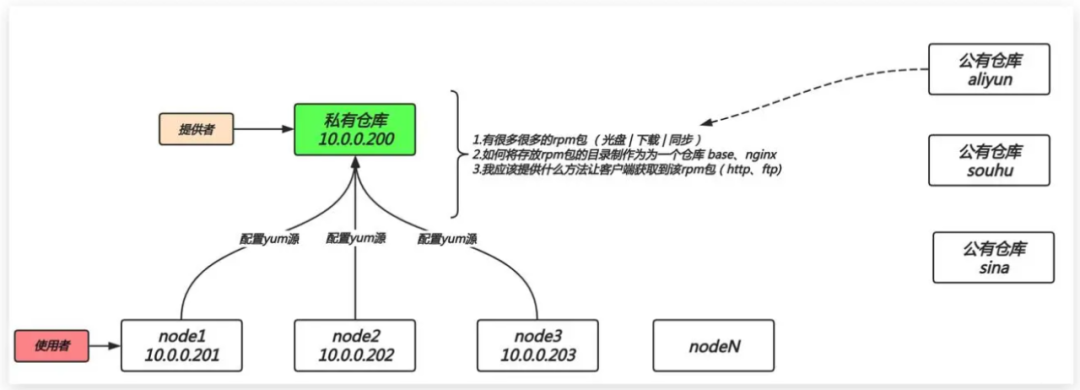 仓库管理:YUM 从配置的远程仓库中下载和安装软件包,用户只需指定软件包名称而无需手动处理依赖关系或查找依赖包。
