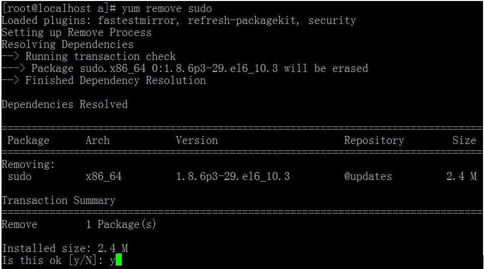 使用 remove 命令卸载指定的软件包。YUM 会自动处理并卸载该软件包及其不再需要的依赖包。