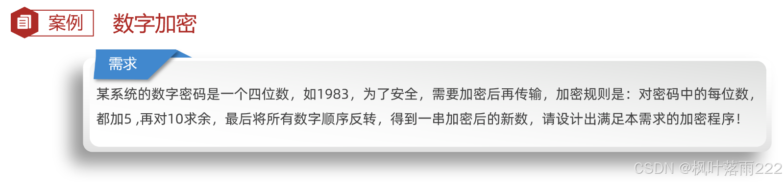 各位道友,接下来我们学习第四个案例《数字加密》,我们还是先阅读一下案例需求