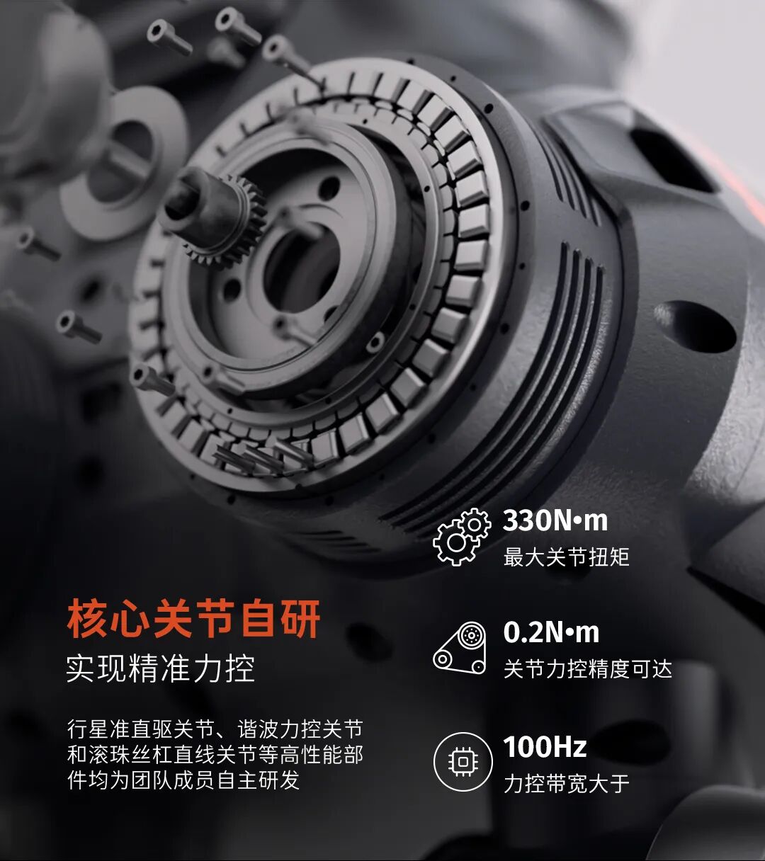 在 SE01 的设计中,众擎走出了一条独特的技术路线,注重寿命更长且成本更低的解决方案。在不使用六维力传感器和行星滚柱丝杆的情况下,依然实现流畅运行和工业级寿命,为市场带来了不一样的产品和技术创新。
