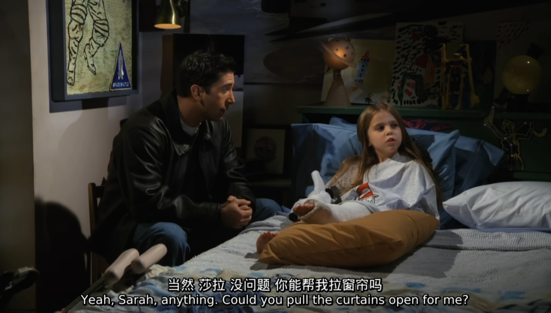 今天,在看《老友记》的时候,有句台词是这样表达“拉开窗帘”的:
