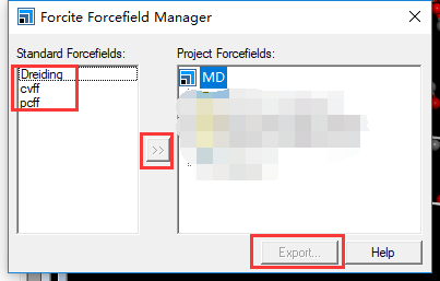 2.导入力场force field。点击Modules➡Forcite➡Forcefield Manager,如图所示,打开力场的选择界面,根据自己的要求导入合适的力场,如图所示。