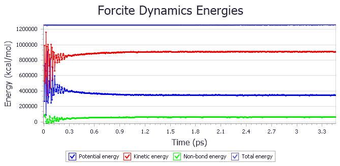 然后就可以运行了,50个分子应该要不了多久的。运行结束后,会有一些中间的数据文件,比如能量、温度,如图所示。
