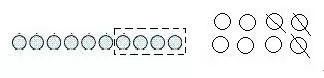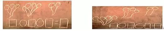 (2)这类的问题有明确的指示,虚线和斜线都表示拿走去掉的意思,这里虚线圈走的部分和斜线划掉的部分都表示从总数中去掉了一部分,这种情况只能写一道算式,但是要强调的是一定要用物体的总数来减,学生容易写成用剩下的部分减拿走的部分。