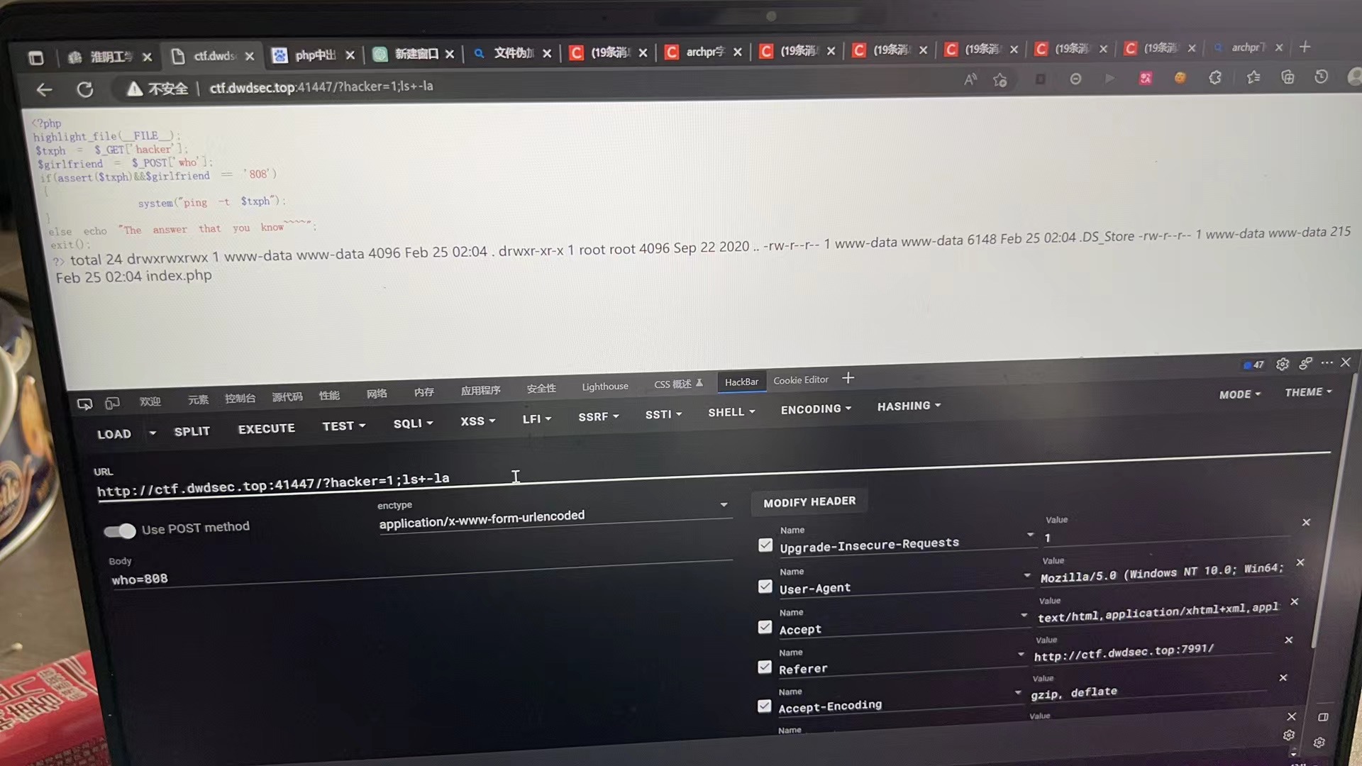 然后尝试直接爆破,用关键字DWDSEC,HYIT,Type-C没反应,期间还用了bp的爆破模块,都没有弄出来(bp这部分可能是我没有设置好的问题)之后不甘心,用御剑扫,发现了