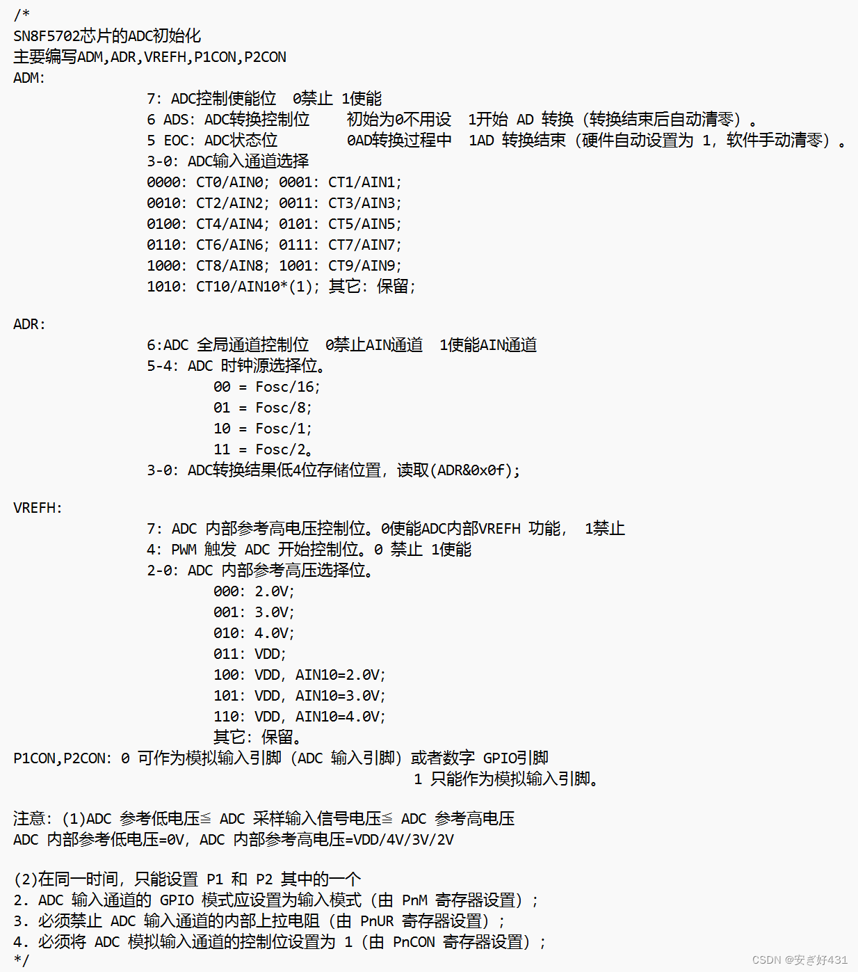芯片ADC的初始化配置代码,结合上述自己理解相关意思。