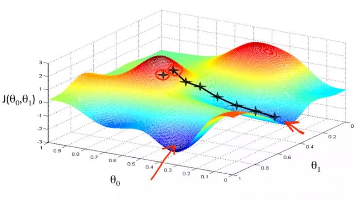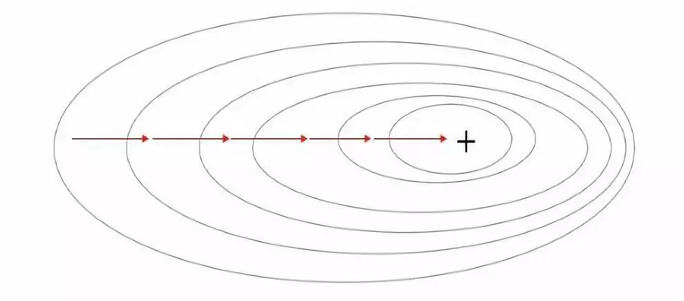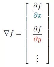 想象自己站在函数 f 以一定间隔排列的点(x0,y0…)之中。向量∇f(x0,y0…)将识别出使 f函数值增加的最快行进方向。有趣的是,梯度矢量∇f(x0,yo…)也垂直于函数 f 的轮廓线!