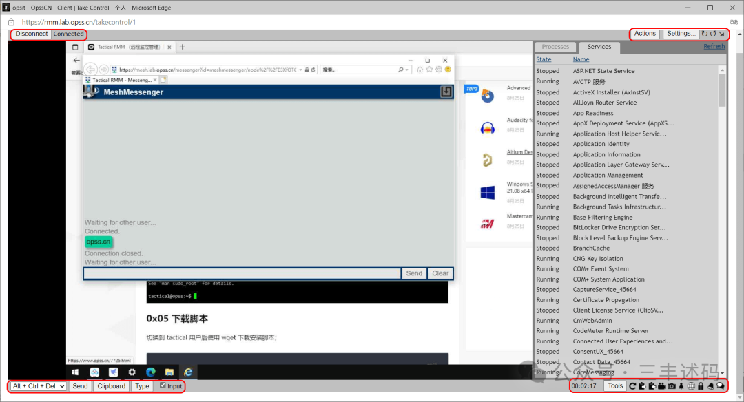 我就不具体每个功能都截图了,这里只是列出远程功能,其他的有兴趣可以看官方的 Demo 或者自行安装体验测试;在需要远程的电脑右键选择 Take Control 即可弹出窗口查看桌面了;