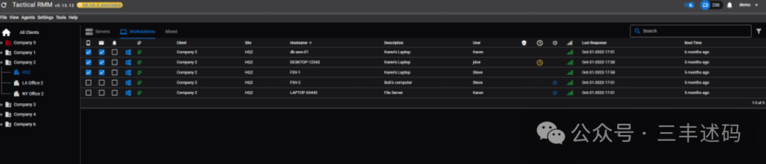 - 远程监控:MSP可以使用Tactical RMM来监控客户的IT系统,包括服务器、工作站、网络设备等,以确保它们运行正常。