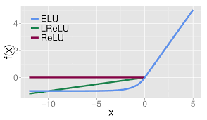 - ELU 在较小的输入下会饱和至负值,从而减少前向传播的变异和信息。
